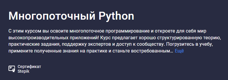 Курс от двукратного лауреата премии🏆Stepik Awards в престижных номинациях: 🥇"Прорыв Года" и 🥇"Лучший платный курс". Курс содержит всё что вам необходимо знать о multithreading в python, от простых до продвинутых тем. Запишитесь сегодня, чтобы уже завтра начать использовать многопоточность в...stepik.org