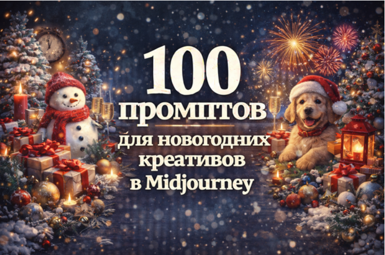 Название: 100 промптов для новогодних креативов в Midjourney (2025)