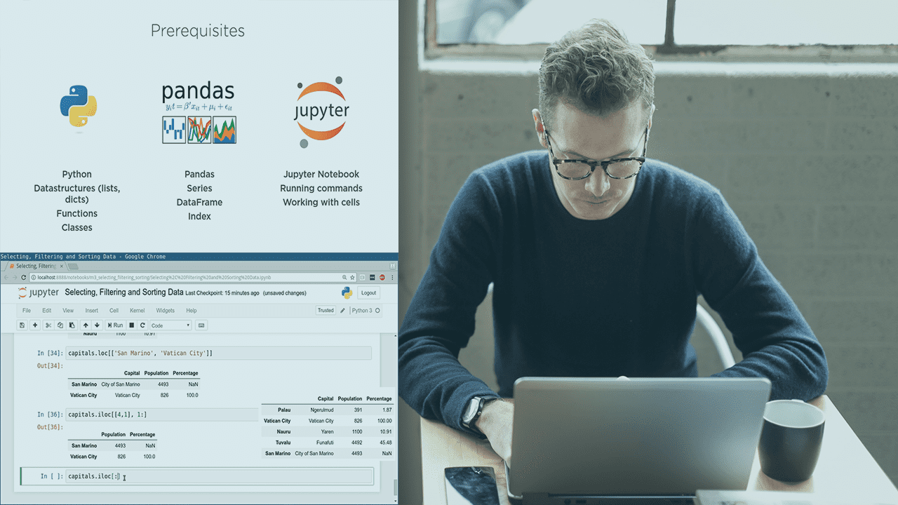 Pandas — это не только один из самых популярных программных пакетов для анализа данных, но и, без сомнения, самый удобный и увлекательный способ работы с вашими данными. В этом курсе Pandas Playbook: Манипулирование данными вы познакомитесь с наиболее важными основными функциями Pandas, сосредоточив внимание на основных функциях двух основных классов Pandas: DataFrame и Series. Во-первых, вы взглянете на новый набор данных и попытаетесь понять его — сколько в нем строк и столбцов? Из каких типов данных он состоит? Вы также проведете некоторые базовые статистические исследования. Затем вы сосредоточитесь на получении информации из набора данных. По сути, речь идет о том, чтобы задавать правильные вопросы и углубляться в ваш набор данных. Наконец, вы узнаете, как очищать и преобразовывать ваши данные. Здесь, вы увидите, как запускать функции Python для наших данных, включая функции, которые мы пишем сами, используя очень классную и мощную функцию под названием groupby() — изменяя структуру наших столбцов и строк и объединяя несколько фреймов данных в один. После просмотра этого курса вы будете готовы практически к любой работе по обработке данных, с которой вы можете столкнуться.