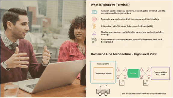 Microsoft создала современный, быстрый и настраиваемый терминал Windows для интеграции с любым приложением командной строки, но проводили ли вы с ним время, чтобы понять, как заставить его работать лучше для ваших нужд? Если вы являетесь опытным пользователем Windows или ИТ-специалистом, работающим в таких ролях, как поддержка, администрирование, разработка и проектирование, быстрое освоение Windows Terminal поможет уменьшить трудности при работе с приложениями командной строки, позволяя при этом настраивать внешний вид терминала, чтобы сделать его своим. В этом курсе «Терминал Windows: начало работы» вы научитесь устанавливать, настраивать и настраивать терминал Windows. Во-первых, вы поймете, что такое Windows Terminal и как его установить. Далее вы узнаете, как управлять терминалом, добавляя профили и настраивая параметры. Наконец, вы потратите некоторое время на использование общих функций терминала, которые вы можете использовать в своей повседневной работе, и поймете, как настроить внешний вид терминала по своему вкусу. Когда вы закончите этот курс, у вас будут навыки и знания о терминале Windows, а также о том, что необходимо для установки, настройки, настройки и использования терминала для всех ваших приложений командной строки.
