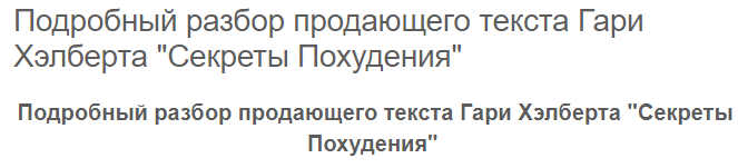 Название: Подробный разбор продающего текста Гари Хэлберта «Секреты Похудения» (2024)