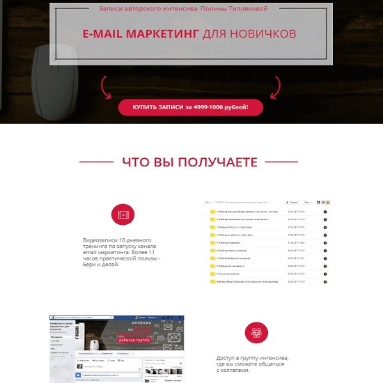 - Видеозаписи 10 дневного тренинга по запуску канала email маркетинга. Более 11 часов практической пользы — бери и делай.