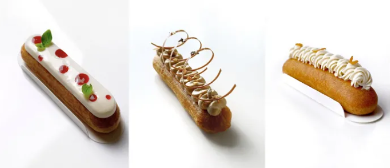 Эклеры со сладкими начинками и декором, с алкоголем в составе.