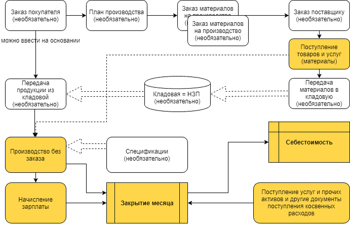 - Вы получите понимание документооборота производственного учета в программе, основных и продвинутых схем учета.