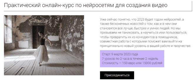 Этот курс особенно будет полезен моушен-дизайнерам, видеографам и художникам, но имейте в виду, что AI у нас учились люди самых разных профессий. Сюда можно прийти из любой отрасли, принести свой смысл и извлечь свою пользу.