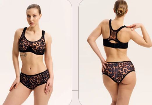 бюстгальтер с Т-образной чашкой, боковой поддержкой и завышенной линией перемычки и декольте. Именно за счет этой конструкции создается хорошая поддержка и стабилизация груди во время активных занятий. Лиф сшит на каркасах 1 типа.
