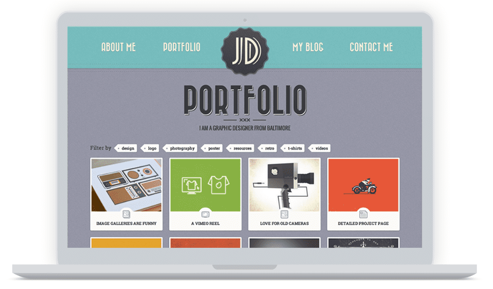 Retro Portfolio – является одностраничным премиум шаблоном для WordPress 3.7-4.8. При помощи этой творческой темы с глубоким дизайном вы сможете создать свой бизнес-сайт или стильное портфолио в стиле ретро. Этот шаблон имеет множество интересных возможностей для пользователей и поставляется с мощными параметрами конфигурации.