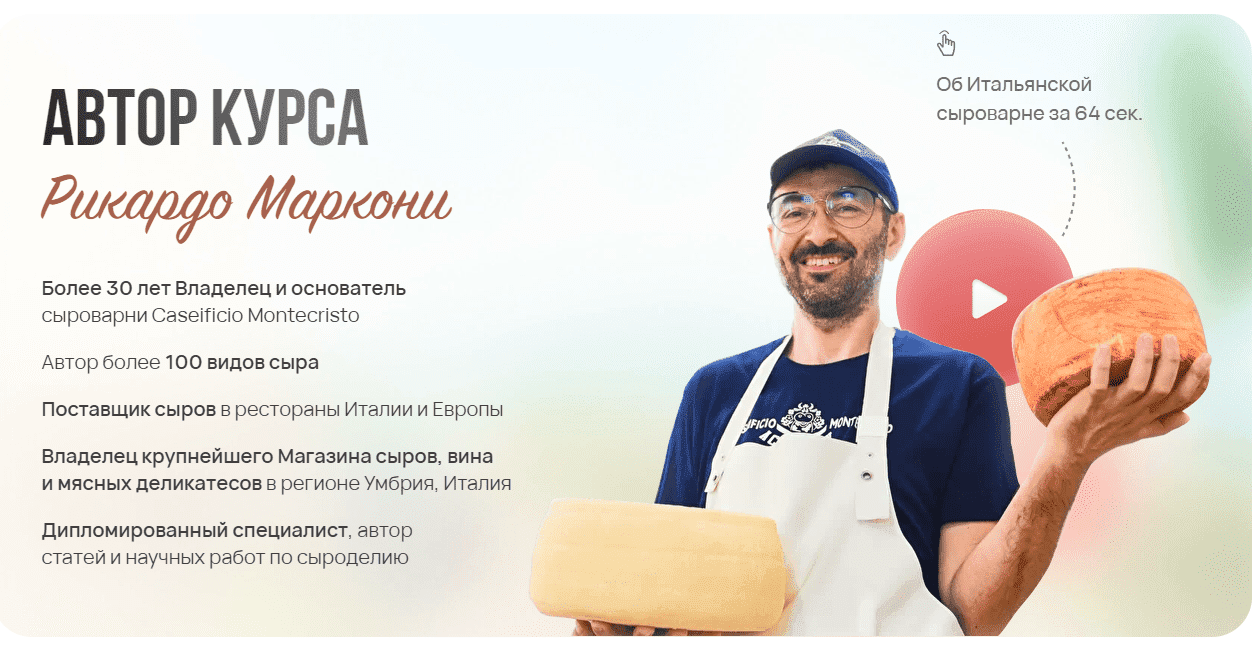 - Дипломированный специалист, автор статей и научных работ по сыроделию