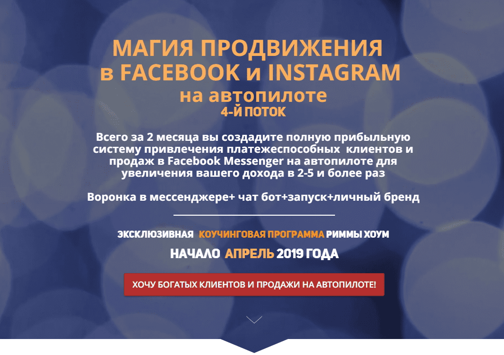 Как вам идея всего за 60 дней создать реальный поток платежеспособных клиентов из Facebook и Instagram, настроить в Messenger продажи и прибыль на автопилоте без огромных вложений и технических проблем и навсегда забыть о проблеме с деньгами?