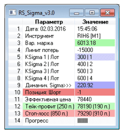 значения настроек сигма-отклонений;