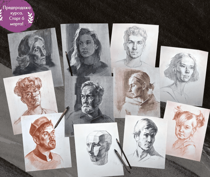На курсе вы научитесь изображать мужчин, женщин и детей в разных ракурсах и в разном освещении, узнаете, как «лепить» форму лица, выделить особенности каждой модели, научитесь тонировать бумагу и поработаете карандашами, углем, сангиной, сепией и соусом.
