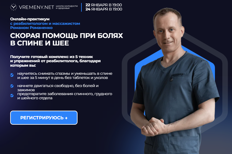 Слив курса Скорая помощь при болях в спине и шее [Все включено] [vremeny.net] [Роман Романенко]
