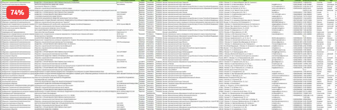 Всего в базе 4 621 924 компаний из них 878924 с мобильными телефонами и информацией о директоре.