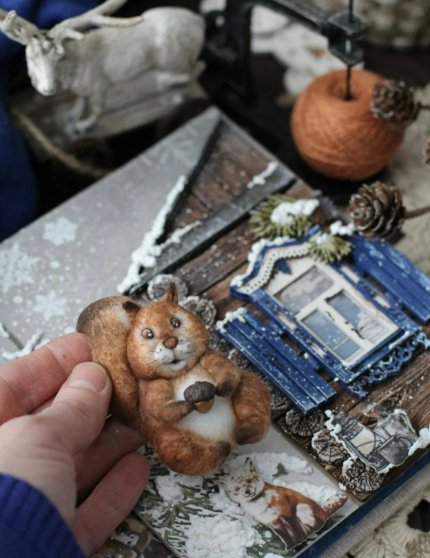 В курсе "Перезимуем!" Мы создадим с вами альбом с интересной конструкцией и декором ручной работы: сколотим колодец, построим два домика, смастерим лыжи, коньки, сошьем бельчонка Василька. В альбоме мы отразим любовь к русской деревне и наполним его настроением той самой зимы из детства.