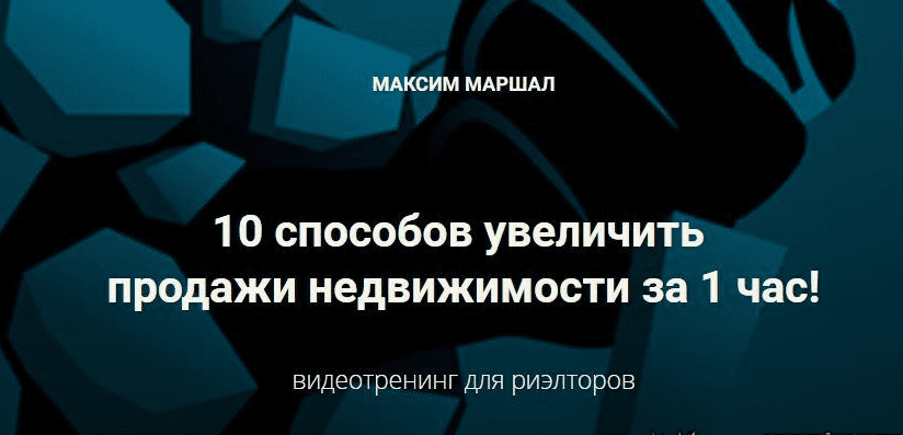 Для тех, кто стремится использовать опыт лучших и трансформироваться в сверхуспешного риэлтора, Максим Маршал подготовил видеотренинг «10 способов увеличить продажи недвижимости за 1 час!».