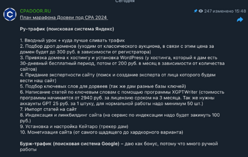 План марафона Дорвеи под CPA 2024