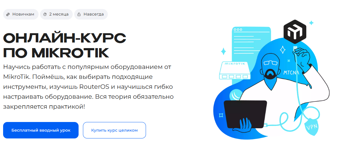 Поймёшь, как выбирать подходящие инструменты, изучишь RouterOS и научишься гибко настраивать оборудование.