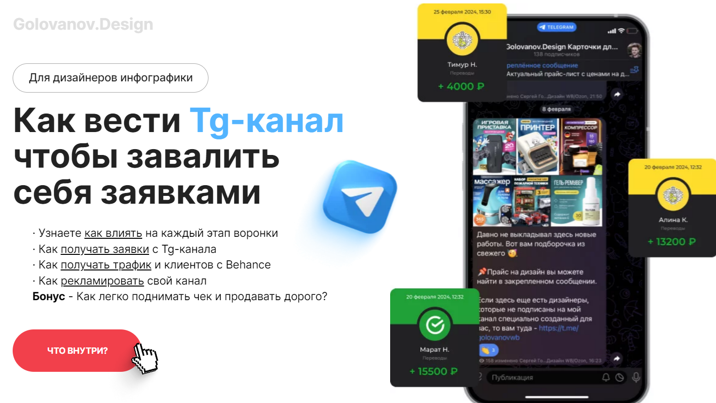 Вы узнаете как вести канал, чтобы получать заявки на дизайн. А также разберем платные и бесплатные методы продвижения.golovanovdesign.ru