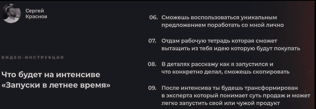 - После интенсивна ты будешь трансформирован в эксперта который понимает суть продаж и может легко запустить свой или чужой продукт