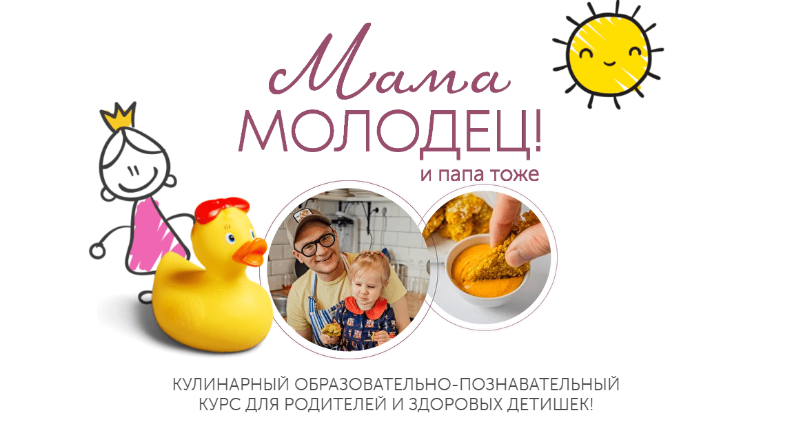 Курс «Мама молодец» разработан командой специалистов в области кулинарии и детского питания. Данный курс является фундаментальным в вопросе питания детей. С самого детства задача родителей — привить ребенку любовь к полезной и здоровой пище, сделать рацион разнообразным и заложить первый кирпичик в строительстве успешной, качественной и долгой жизни!