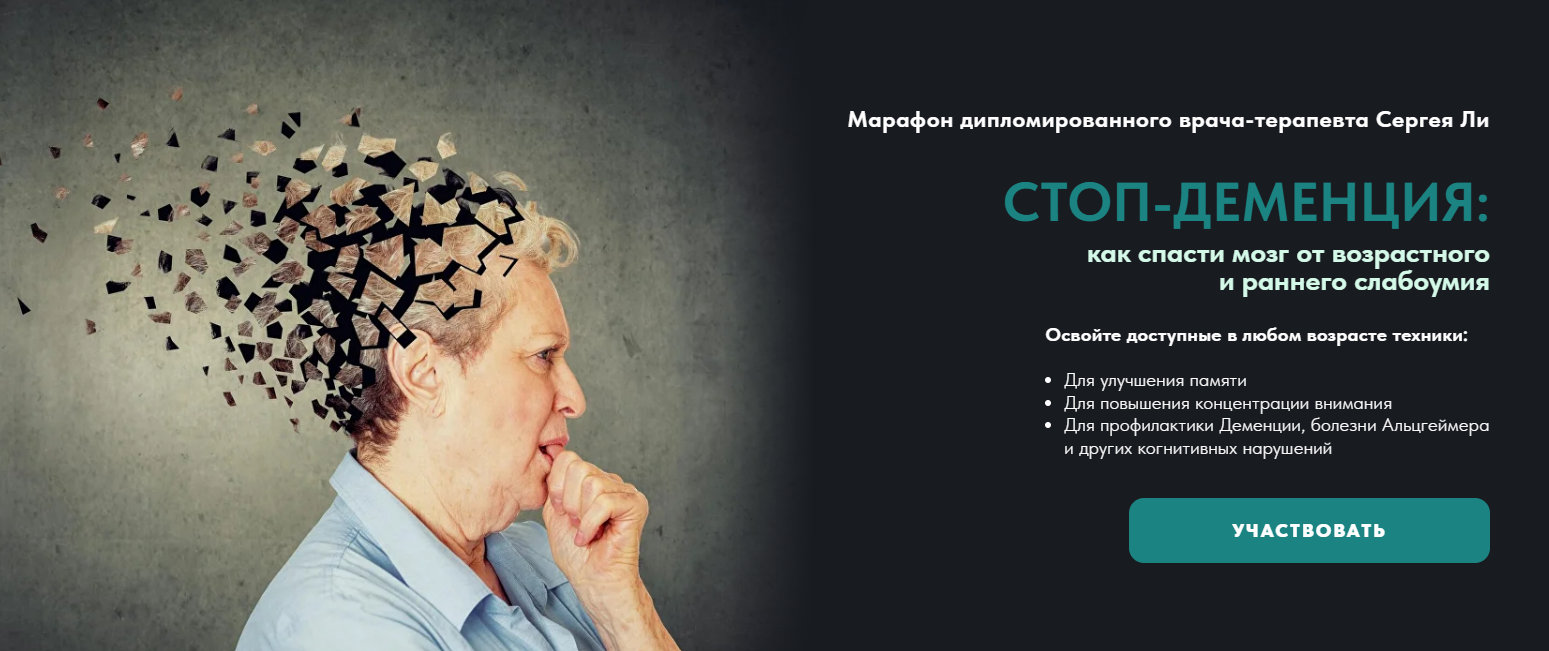 Марафон Сергея Ли — это целенаправленная программа по спасению мозга от дегенеративных заболеваний и профилактике раннего слабоумия.