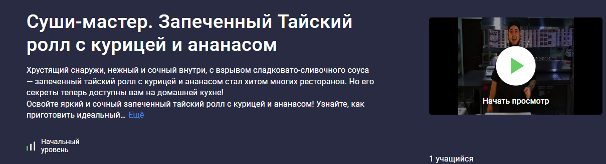 - Всего за несколько уроков вы не просто повторите рецепт, а полностью овладеете техникой и поймете логику блюда. Вы сможете уверенно готовить этот ресторанный ролл дома, радуя себя и удивляя гостей.