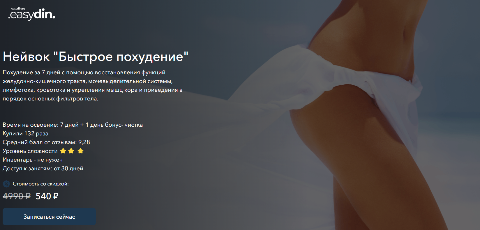 Похудение за 7 дней с помощью восстановления функций желудочно-кишечного тракта, мочевыделительной системы, лимфотока, кровотока и укрепления мышц кора и приведения в порядок основных фильтров тела.<br><br><br>Время на освоение: 7 дней + 1 день бонус- чистка<br> Купили 1132 раза <br>Средний балл...easydin.ru