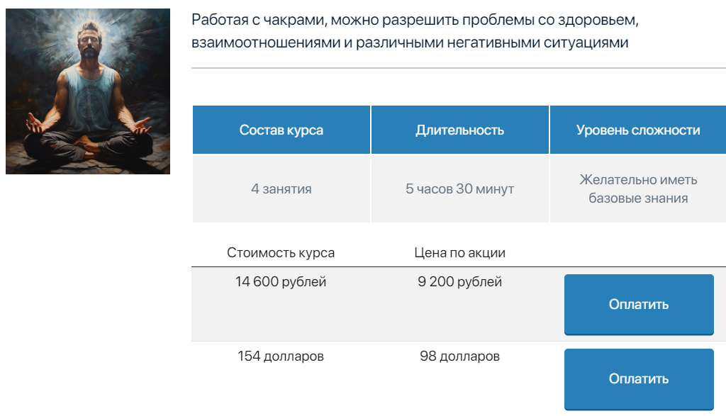 На курсе вы научитесь наполнять, чистить, исправлять, приоткрывать/закрывать чакры, ограничивать нежелательное влияние внешнего мира на наш внутренний мир.