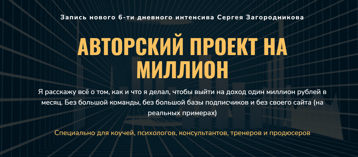 [Сергей Загородников] Авторский проект на миллион (2022)