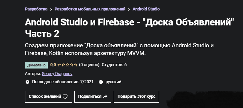 [Sergey Dragunov] [Udemy] Android Studio и Firebase - "Доска Объявлений" Часть 2 (2021)