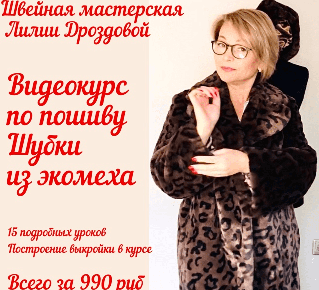 В видеокурсе есть построение выкройки, шубка на утеплителе и для защиты от ветра простегана на плащевку.