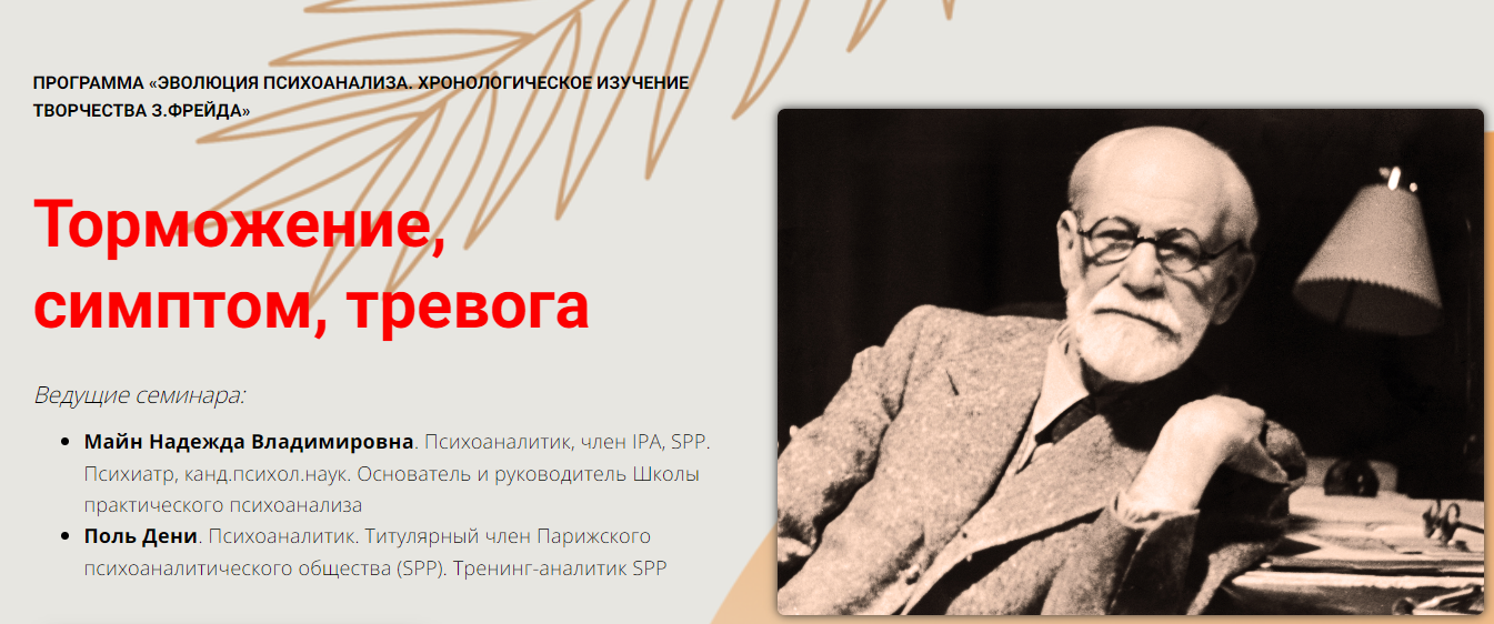 Программа «Эволюция психоанализа» продолжается разбором работы З.Фрейда «Торможение, симптом, тревога».