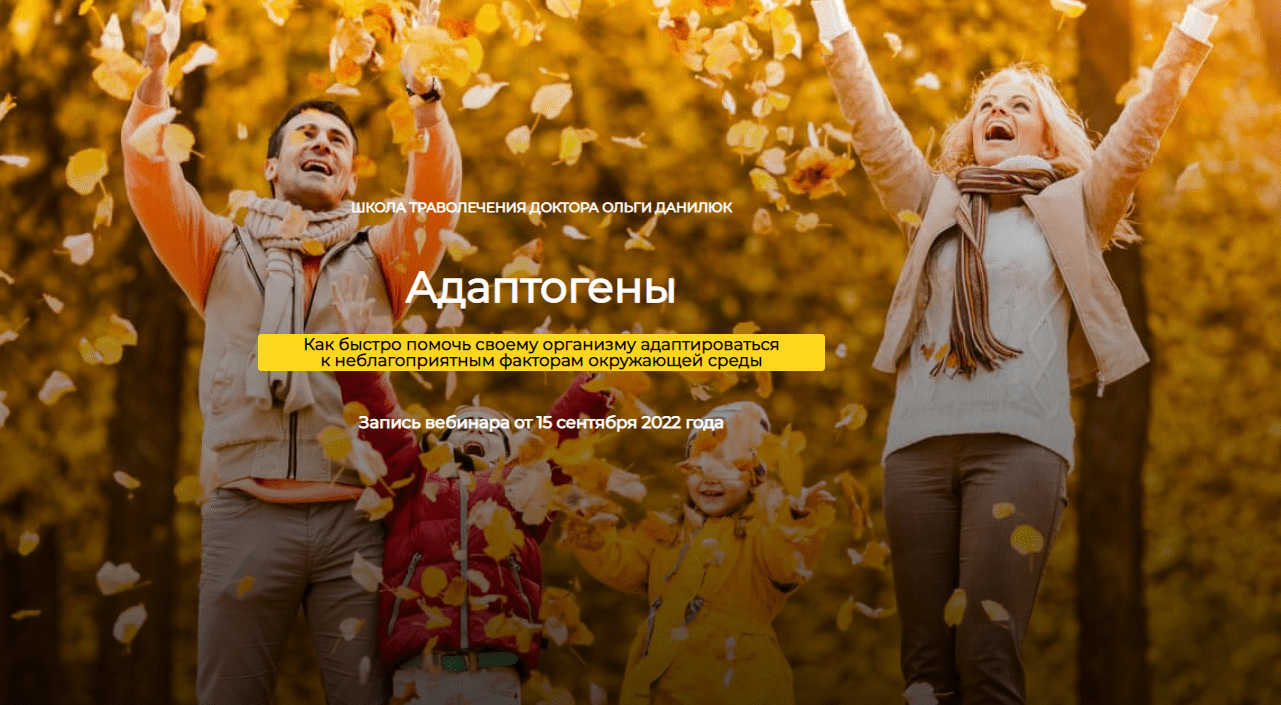 Запись вебинара доктора Ольги Данилюк, который проходил в прямом эфире 15 сентября 2022 года и был посвящен адаптогенам — растениям, дарующим жизненную силу.