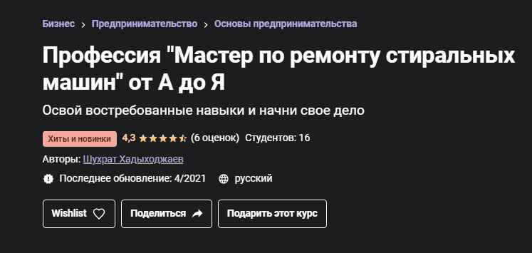 [Шухрат Хадыходжаев] Профессия "Мастер по ремонту стиральных машин" от А до Я (2021)
