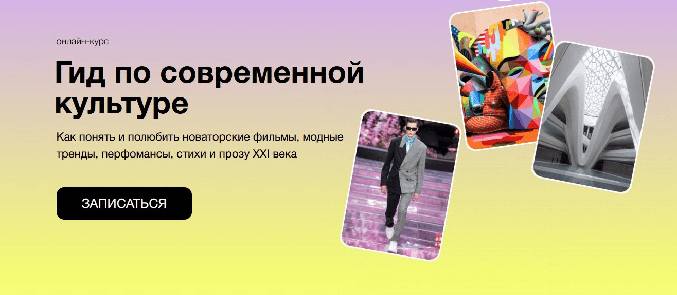 Нужно освоить инструменты, которые помогут анализировать произведения самостоятельно и отличать хайп от важных трендов. Сделаем это на курсе. поймём основные принципы современной культуры и разберёмся, на каком художественном языке говорят художники XXI века.