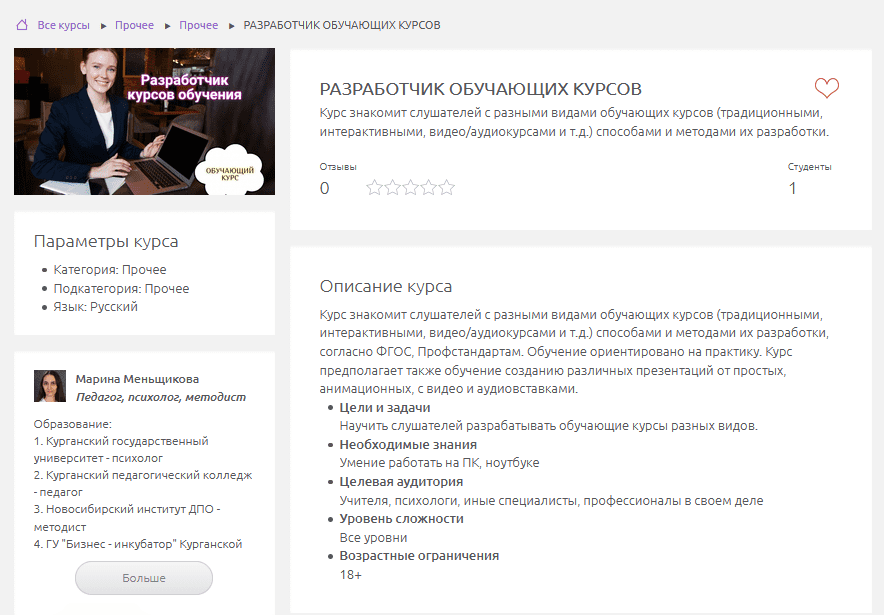 Цели и задачи: Научить слушателей разрабатывать обучающие курсы разных видов.
