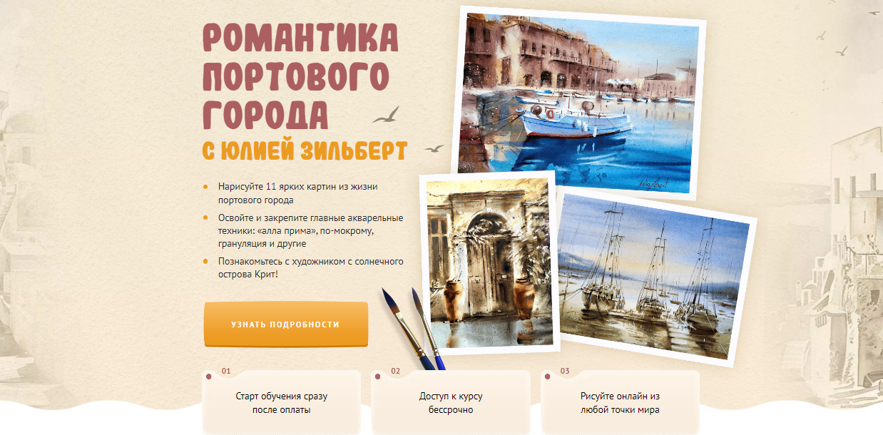 Наш курс представляет собой настоящее путешествие по миру морских пейзажей, уютных гаваней и живописных улочек греческого портового города! Вас ждут разнообразные сюжеты, начиная с морских просторов и заканчивая тихими улочками, где время кажется остановившимся.
