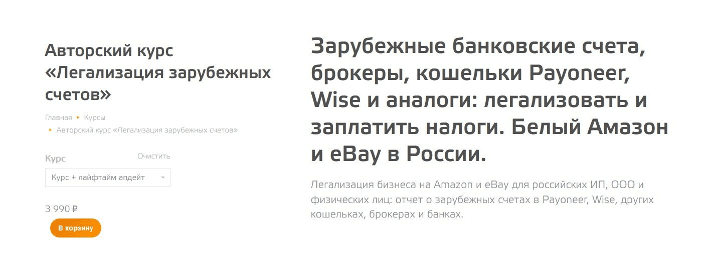 Стоимость курса сравнима со стоимостью консультации юриста и бухгалтера, при этом курс закроет данный вопрос со всех сторон. В то время как сторонние специалисты могут (и не будут) знать нюансов работы на Amazon.white-money.com