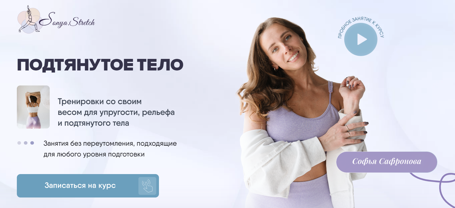 - Подарочная тренировка из курса «Новая осанка» Чтобы вы могли ознакомиться с другими направлениями моих тренировок