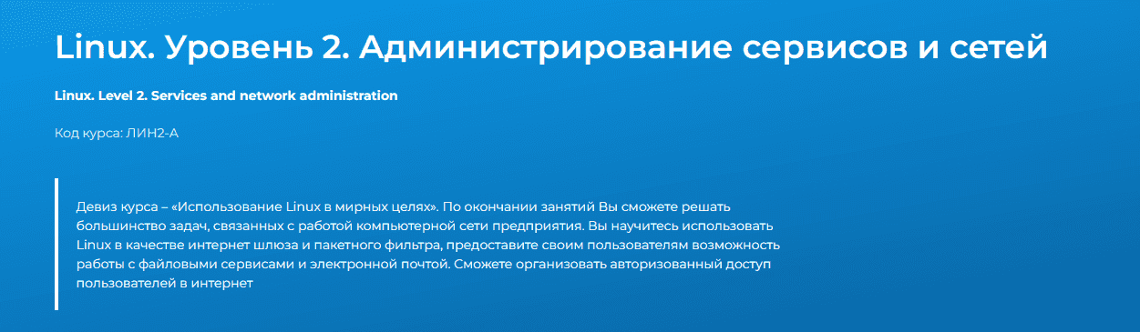 Скачать:Курс «Linux. Уровень 2. Администрирование сетевых сервисов» обучение онлайн и очно в Москве, цены и программа курса