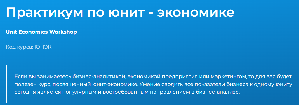 Скачать:Курс «UNIT-экономика: метрики и анализ» обучение онлайн и очно в Москве, цены и программа курса