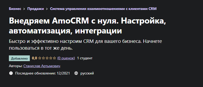 [Станислав Артымович] [Udemy] Настройка AmoCRM с нуля, crm боты, задачи, рассылки, телефон (2021)