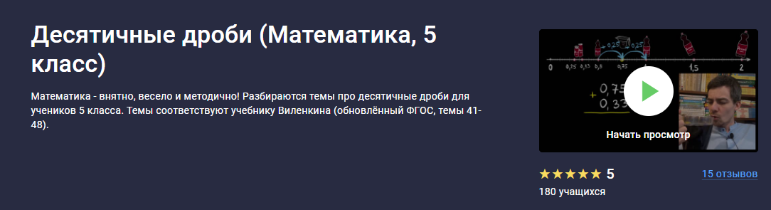 Для учеников 5 класса - прежде всего, учащихся по учебникам Н.Я.Виленкина. Но курс подойдёт и для любого, кто просто хочет освоить десятичные дроби.