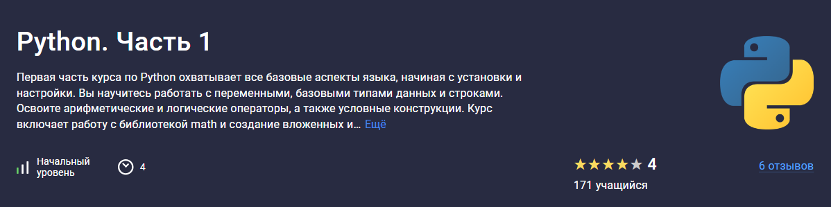 Первая часть курса по Python охватывает все базовые аспекты языка, начиная с установки и настройки. Вы научитесь работать с переменными, базовыми типами данных и строками. Освоите арифметические и логические операторы, а также условные конструкции. Курс включает работу с библиотекой math и...stepik.org