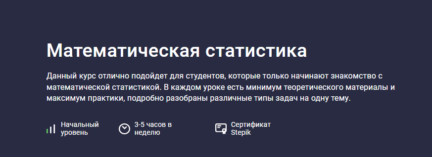 Данный курс отлично подойдет для студентов, которые только начинают знакомство с математической статистикой.