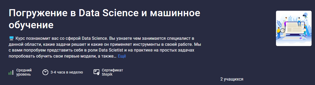 🖥️ Курс познакомит вас со сферой Data Science. Вы узнаете чем занимается специалист в данной области, какие задачи решает и какие он применяет инструменты в своей работе. Мы с вами попробуем представить себя в роли Data Scietist и на практике на простых задачах попробовать обучить свои первые...stepik.org