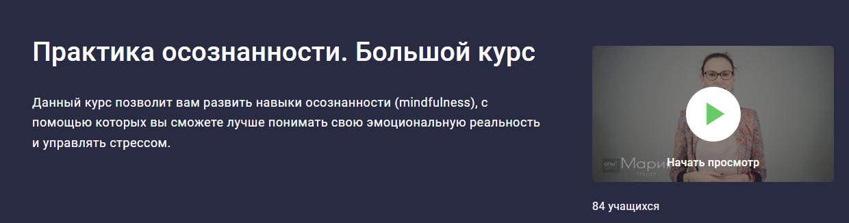 В данном курсе вы узнаете, что такое осознанность и как связаны наше тело и сознание; вы найдёте инструменты по развитию осознанности и практики развития эмоционального интеллекта и управления стрессом с помощью осознанности.