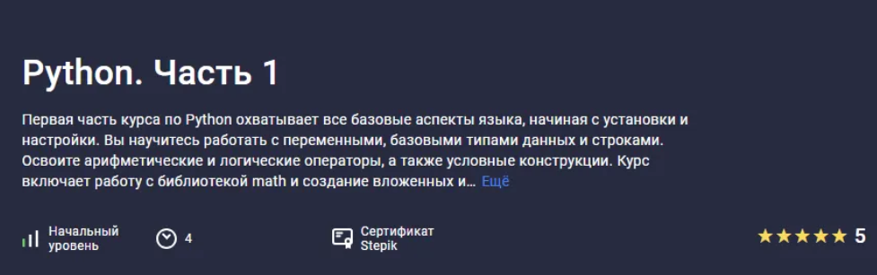 Первая часть курса по Python охватывает все базовые аспекты языка, начиная с установки и настройки. Вы научитесь работать с переменными, базовыми типами данных и строками. Освоите арифметические и логические операторы, а также условные конструкции. Курс включает работу с библиотекой math и...stepik.org