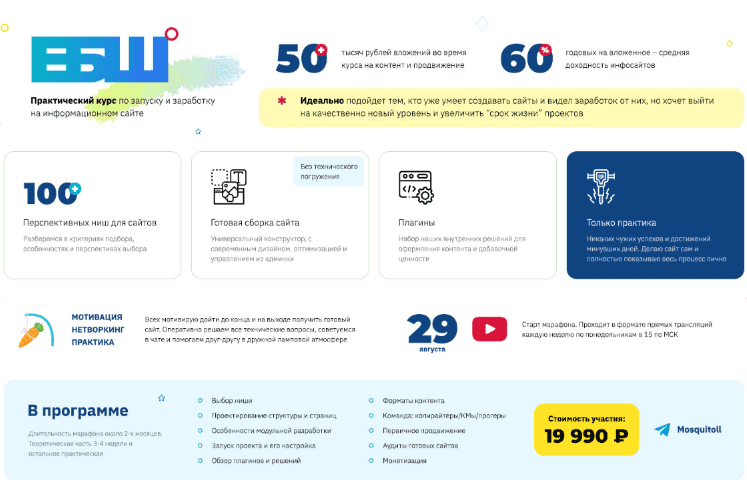 С 29 августа мы начинаем большой практический курс по запуску подобного сайта, а также полный цикл его разработки и выводу на доход.