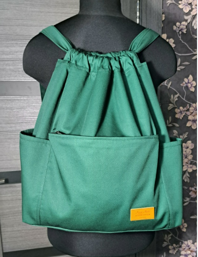 Это полноценный рюкзак с тремя карманами, регулирующими лямками, закрывающийся на затяжку!